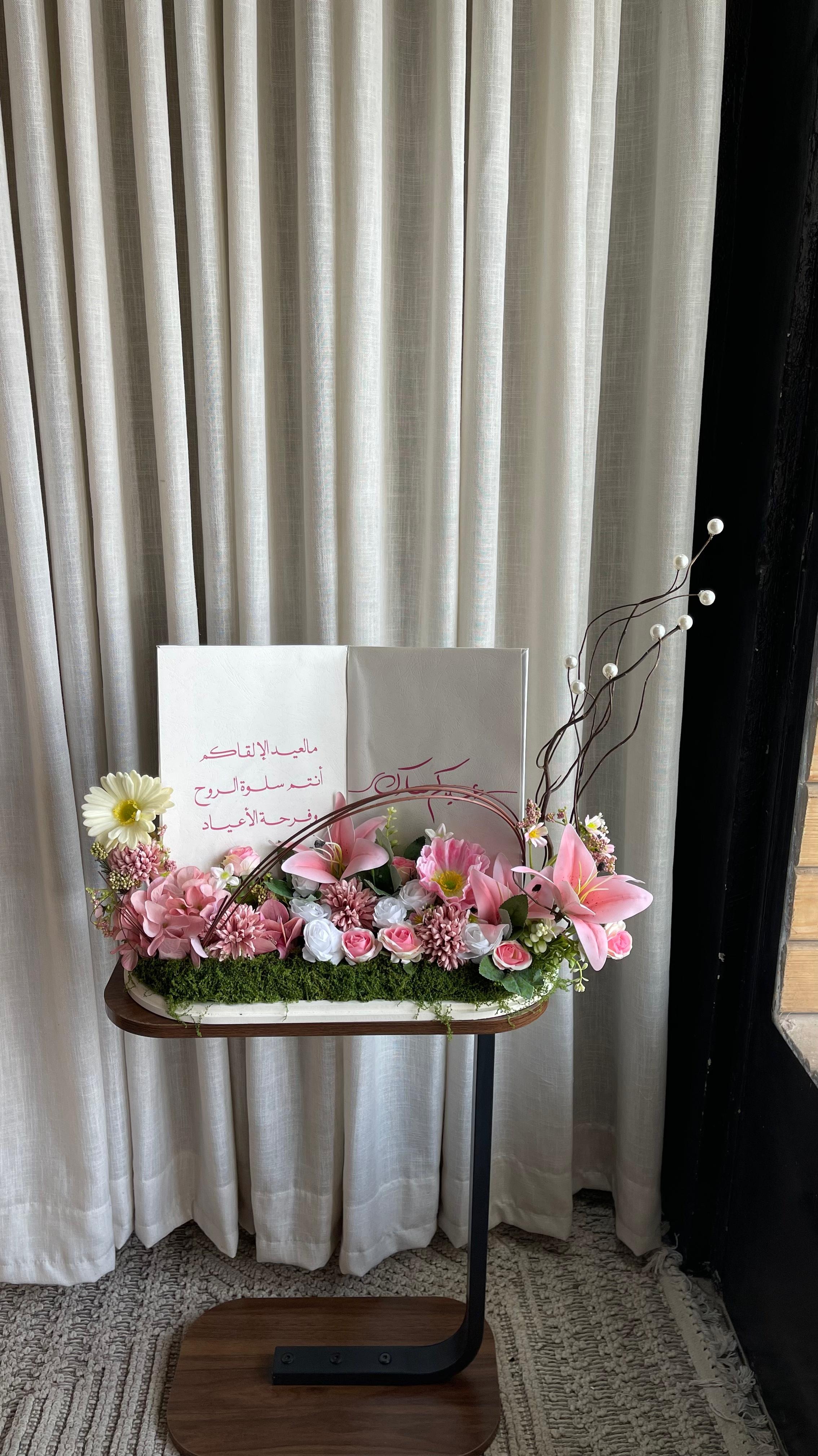احتفل بفرحة العيد بطريقة مميزة مع هدية كتاب العيد المنسّقة بعناية مع ورد فاخر وقاعدة أنيقة تضيف لمسة راقية لكل زاوية. تصميم متكامل يجمع بين الجمال والبساطة ليكون هدية مثالية تعبّر عن الذوق الرفيع والمشاعر الصادقة.